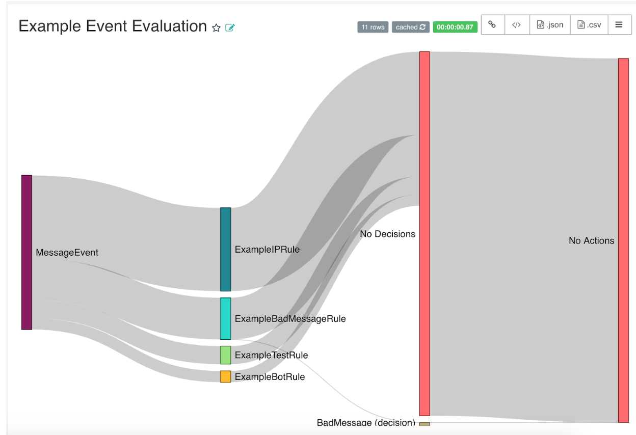 We’ve seen how the use of common abstractions gives us more leverage on our performance improvements. In the online setting, allowing us to minimize service requests even as we’ve scaled to over one-hundred million events (and one billion data fetches) per day. What’s more, the use of these abstractions has delivered further impact by allowing us to standardize other aspects of our systems. Before, when different defense teams built and maintained their own systems, it could be difficult to determine where exactly an event had been evaluated, what the outcome of that evaluation was - or whether said evaluation had occurred at all. Now that we have a single, consolidated entry point to our evaluation processes, we can log not only every event but also every fetch, decision, and resulting action that occurs over the course of the evaluation. By standardizing this data, we have been able to drastically improve our observability into a variety of crucial questions: the performance of our evaluations, the efficacy of our challenges, the particular information that led to a user being challenged or suspended.