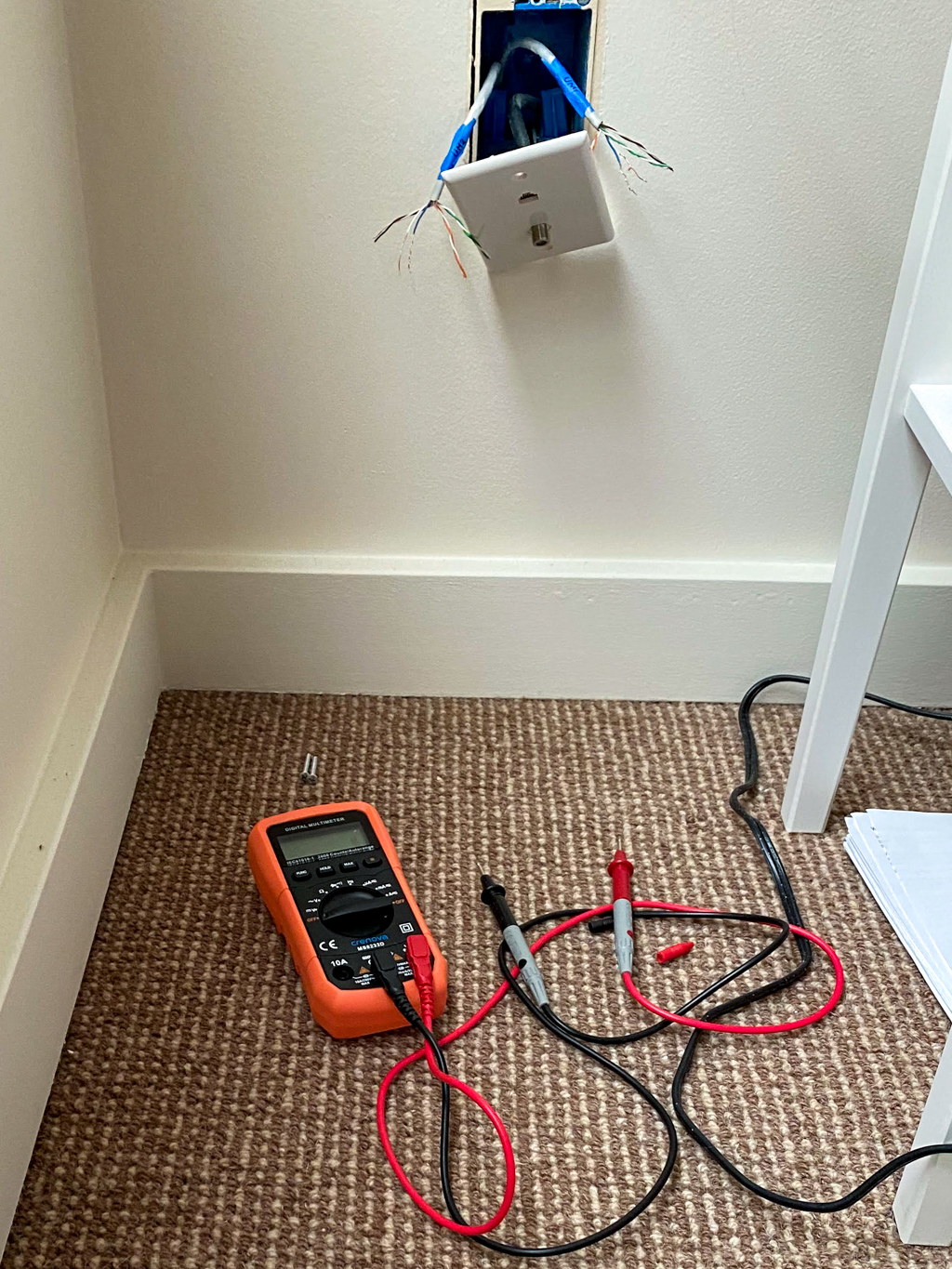 - Measure the resistance of same-colored ethernet wires behind other wall plates.