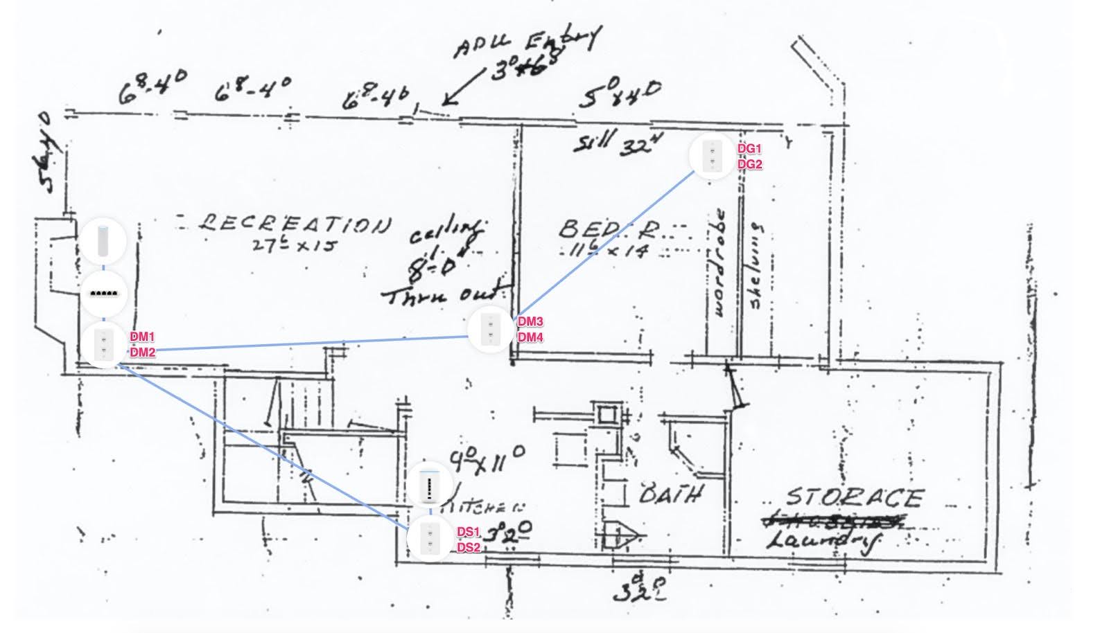 Now I got busy with planning out the network. I drew several network diagrams, fiddled with placement of access points to model the dB signal loss, tinkered with Wi-Fi channel utilization, and even went down the rabbit hole of reading about RF theory and modulation.